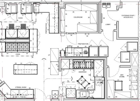 Large Catering Hostel Kitchen Layout Plan Cad Drawing Details Dwg File