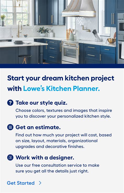 Online tools for every project lowe s kitchen planner find your ideal kitchen style with our quiz get a cost estimate and schedule a free consultation to get all the details just right free virtual design consultation a lowe s kitchen designer can help you create your dream kitchen and arrange for installation